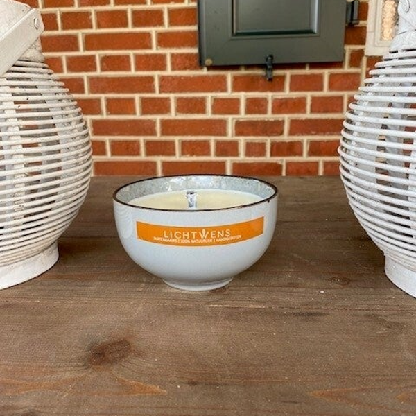 Geniet extra van mooie zomeravonden met deze stijlvolle, 100 procent natuurlijke en heerlijk geurende kaars. Prachtig verpakt, leuk om kado te geven! De heerlijke warme citrusmix van limoen - bergamot - sinaasappel - citroengras geniet je nóg meer van je zomeravonden. Het bakje is -eenmaal leeg- heel mooi voor een borrelhap of je ochtendyoghurt.